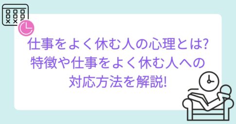 メンタルヘルス今回は、仕事をよく休む人の心理や特徴、そして仕事をよく休む人への対応方法について紹介します。 こんなお悩みありませんか? 仕事が忙しいときに限って、よく休む人がいると「またか!」とイライラしてしまいますよね。 そこで、仕...